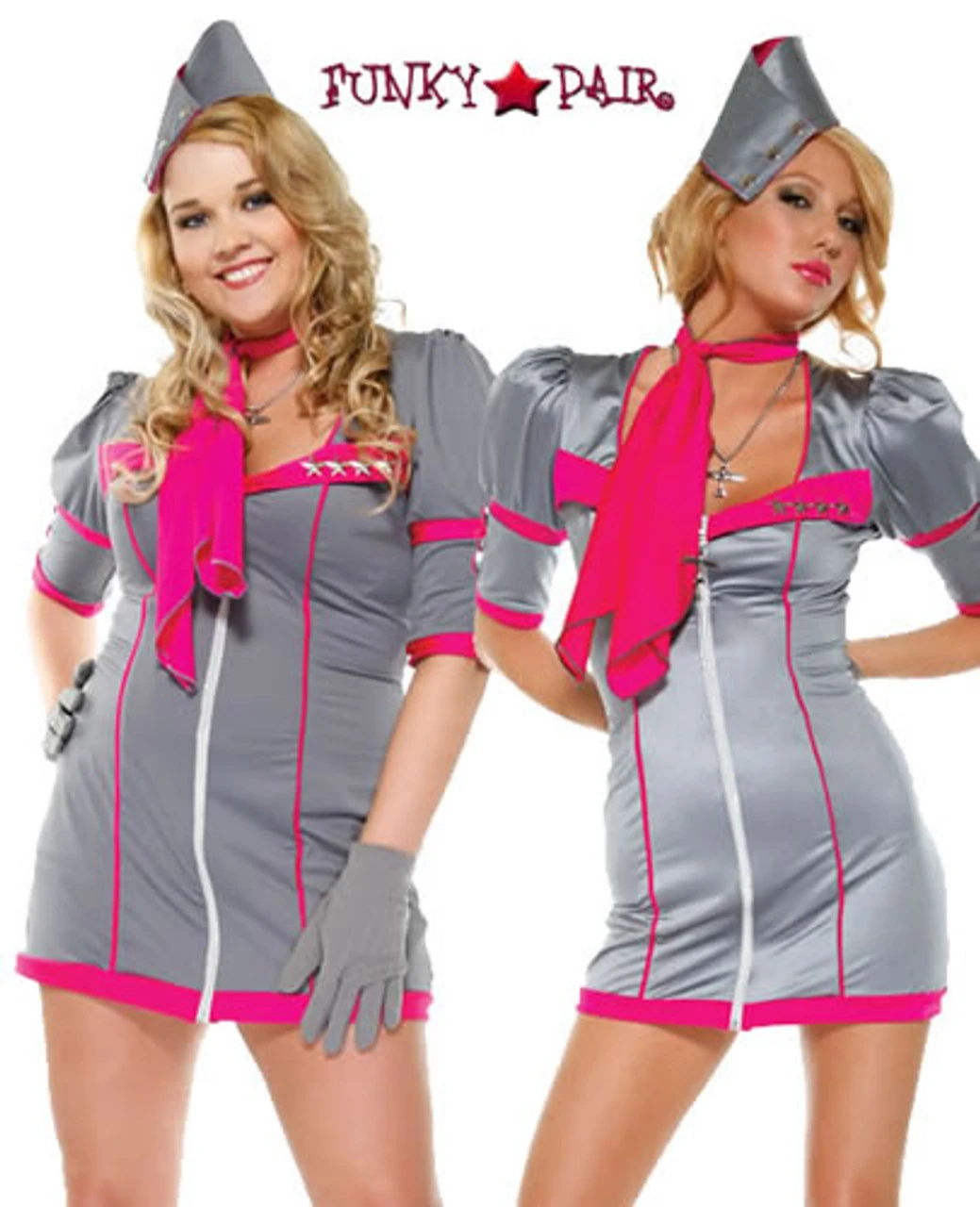 Flight Attendant costume set with zip front dress, napkin hat, scarf, and gloves