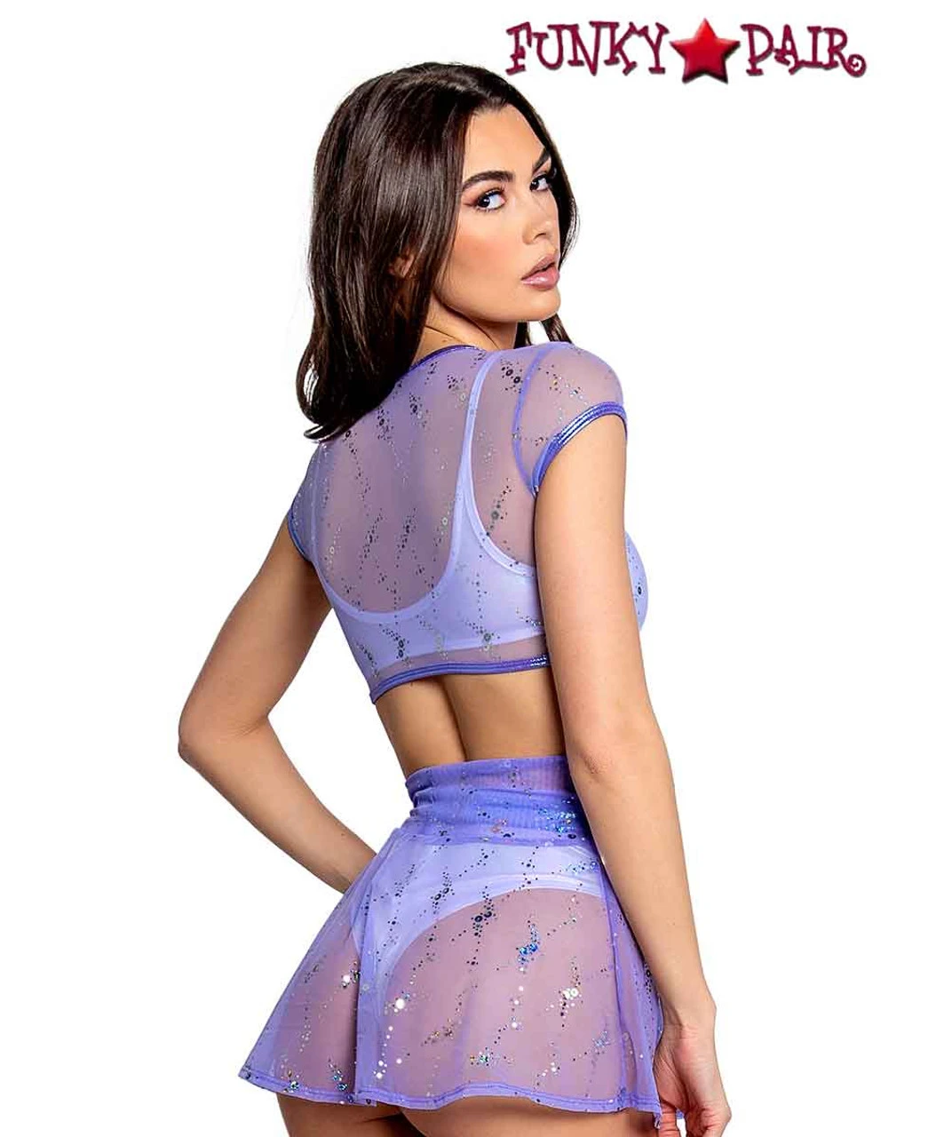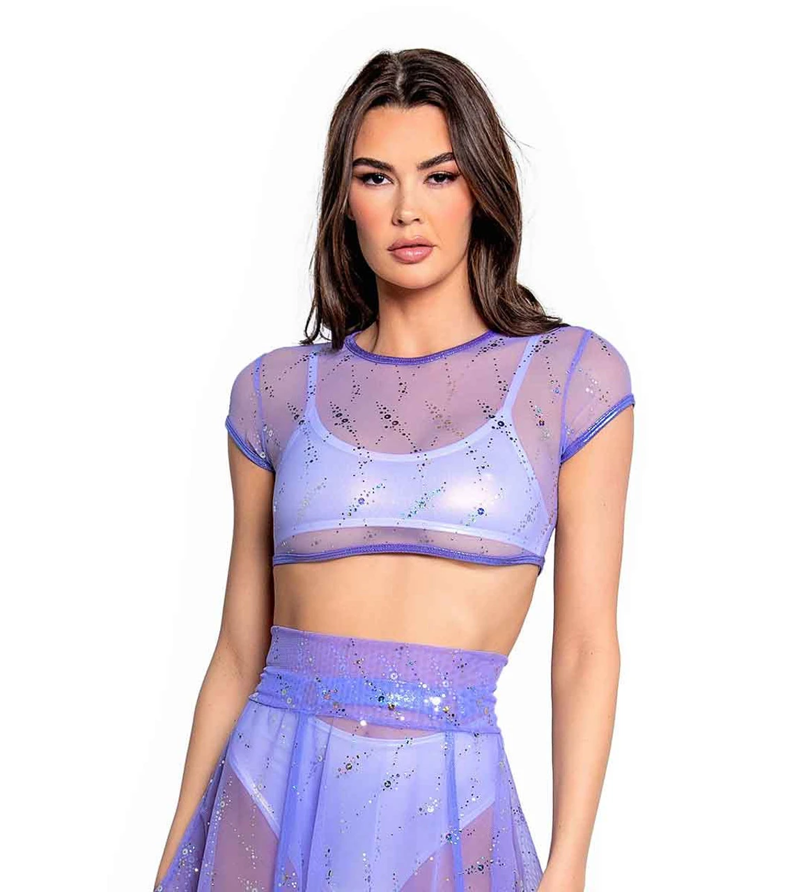 Astro Sequin Mesh Cap Sleeve Top, 85% Nylon 15% Spandex, Hand Wash Cold Made in USA