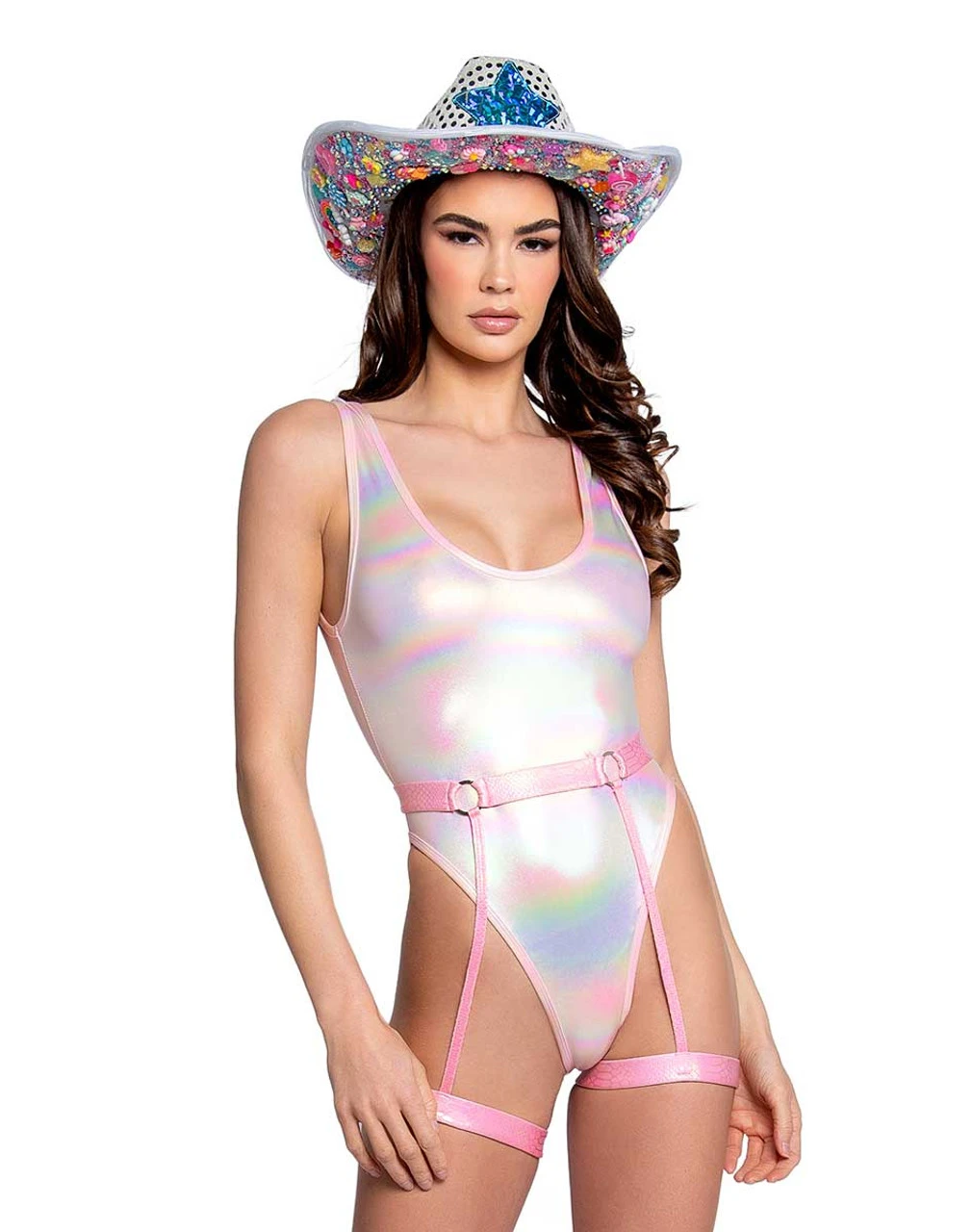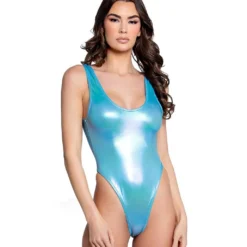 Transform into a mystical creature with this dazzling Unicorn Foil Bodysuit! Everyone will be in awe of your magical style and the high shine of the metallic foil.