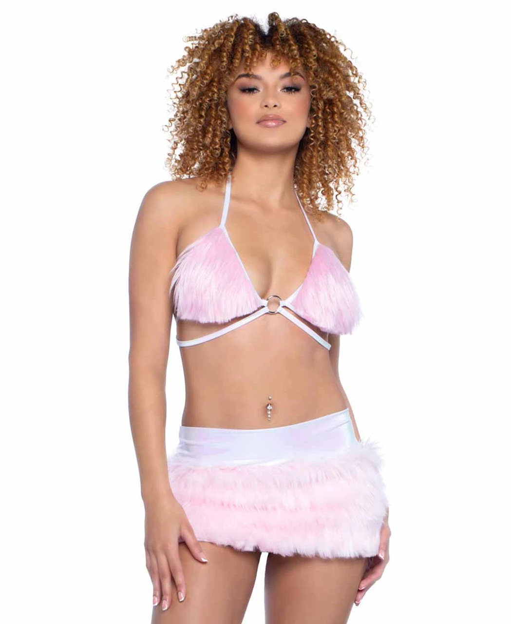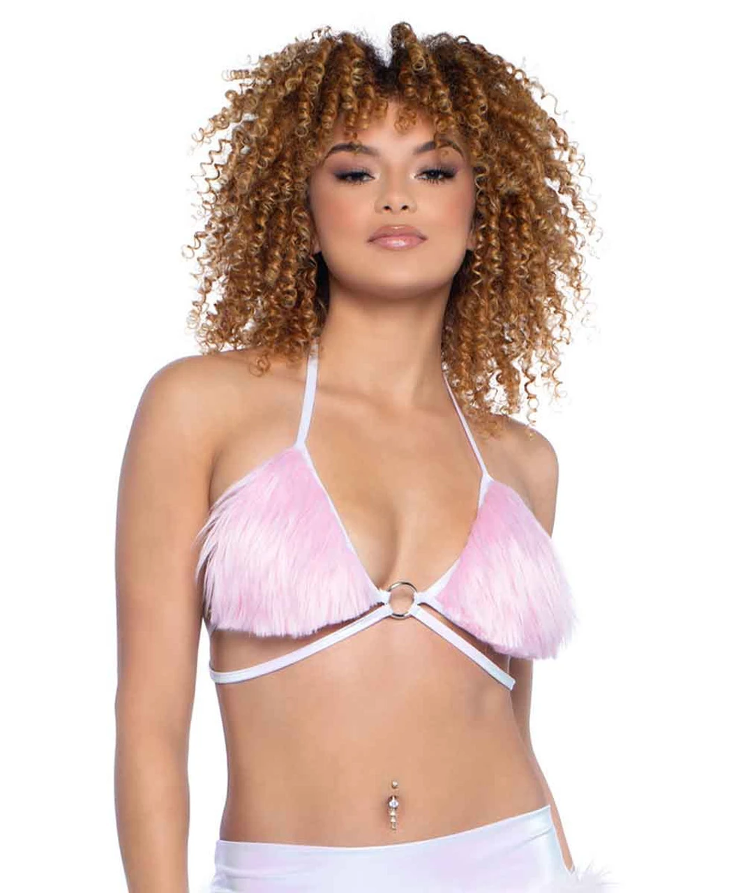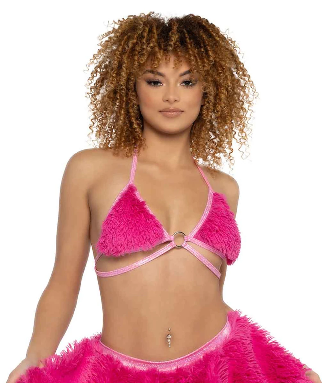 Faux Fur Triangle Top, Fabric: 100% Acrylic Faux Fur, Made in USA, Wash: Hand Wash Cold