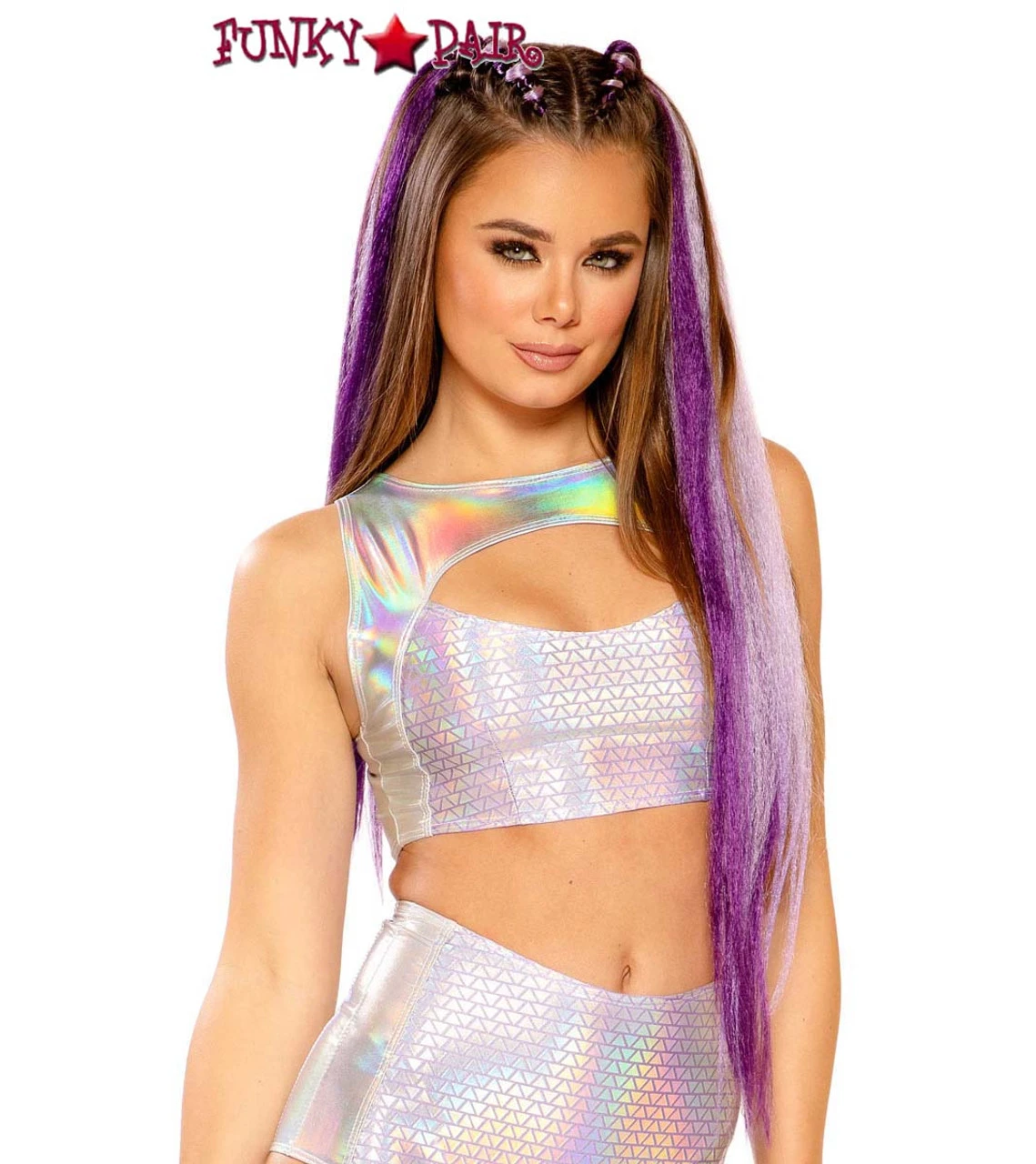 J. Valentine JV-FF151, Keyhole Panel Top. Stretch Fabric. Fabric: 85% NYLON 15% SPANDEX Available in Lavender Silver Pyramid,Red Cobra, and Silver Cobra