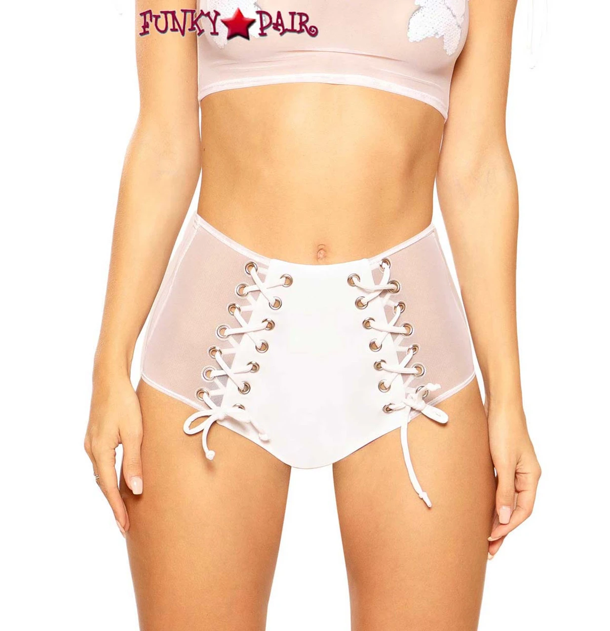 J. Valentine JV-FF282, Lace-Up Short. Stretch Mesh, Zipper-Back. Fabric: 85% NYLON 15%