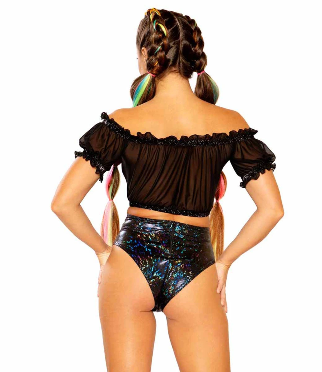 Metallic High-Cut Short Stretch Fabric, Zipper-Back Fabric: 85% NYLON 15% SPANDEX – TOP SOLD SEPARATELY