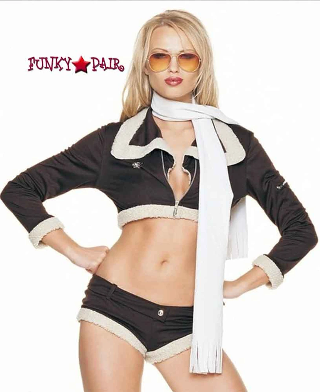 3PC. Aviator costume, includes plush trimmed crop top, shorts, and scarf.
