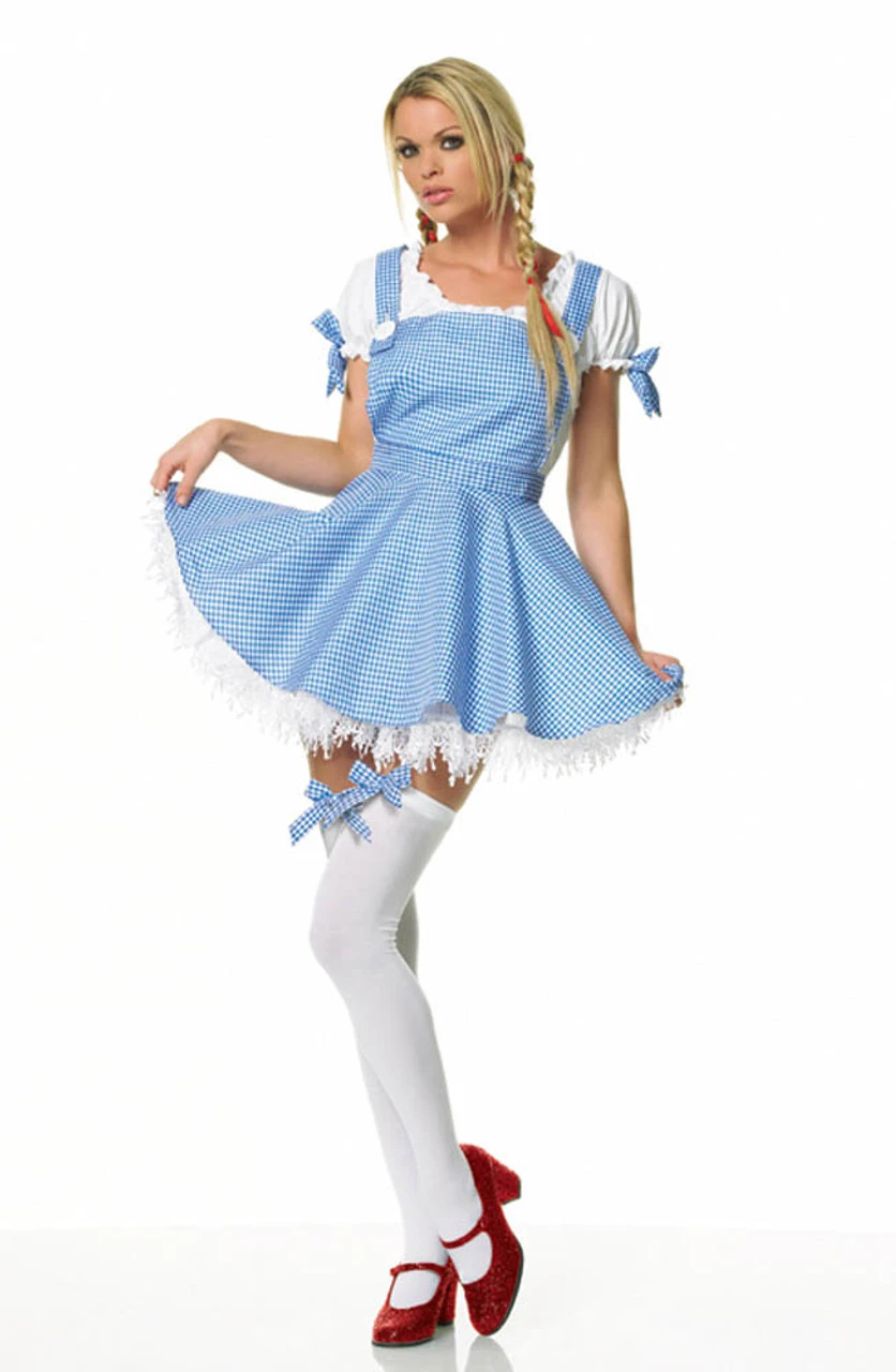 2PC. Dorothy costume, includes apron dress, and gingham bow stockings.