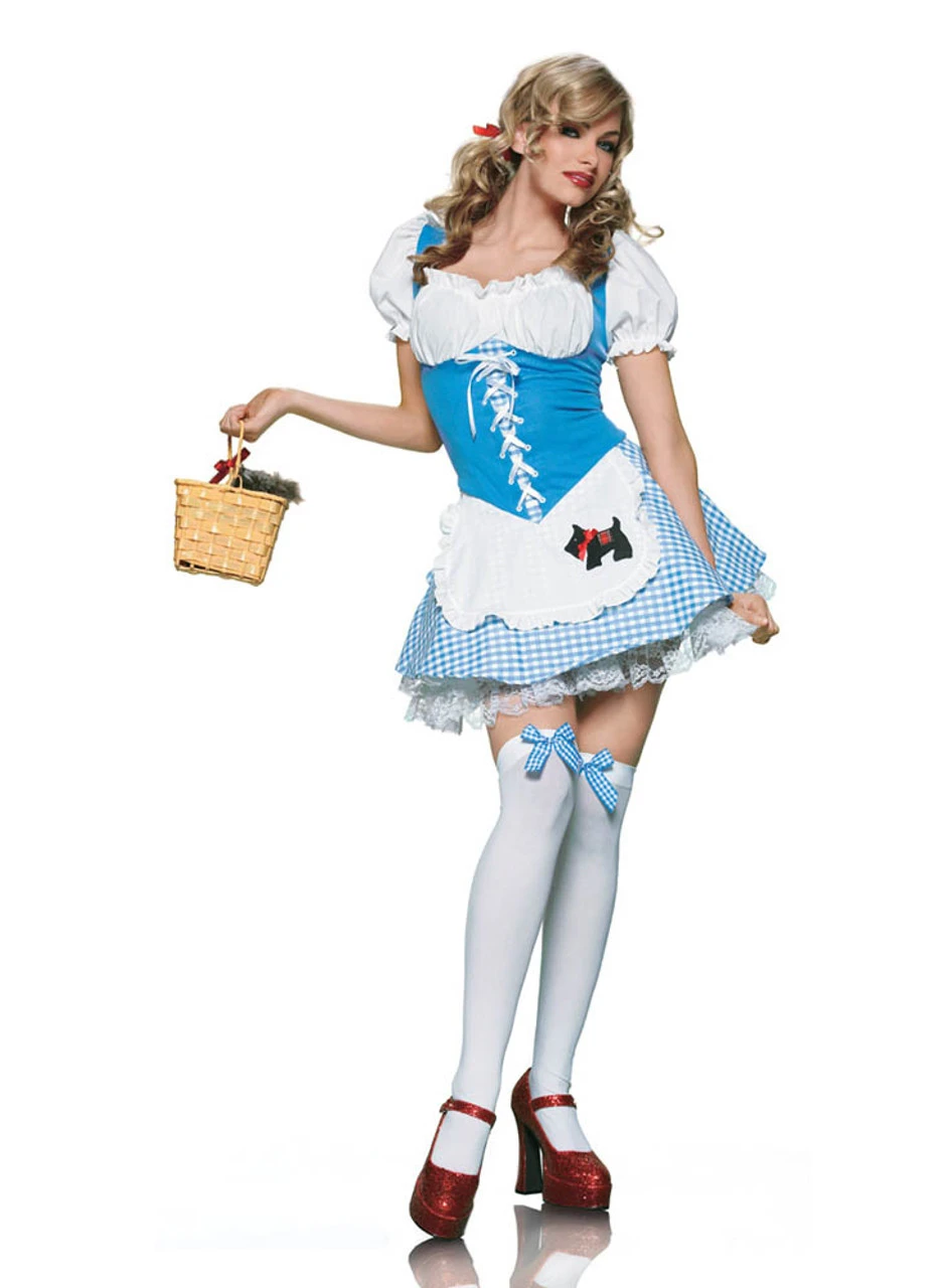 Dorothy Girl Costume with peasant top gingham dress with applique. Petticoat, stockings and basket not included.