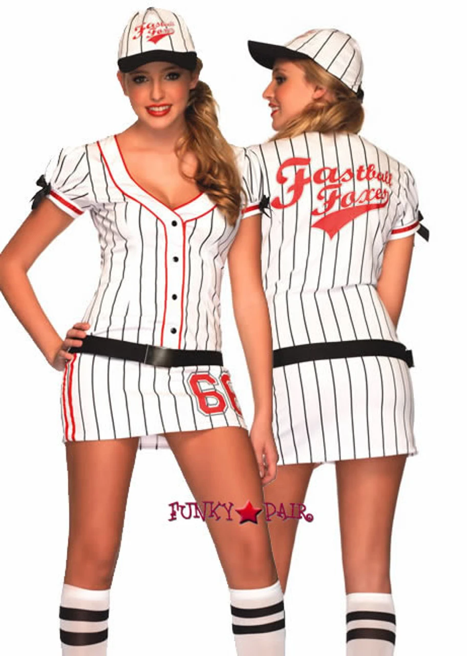 Fastball Fox, includes button front dress with bow accents, hat, belt and socks