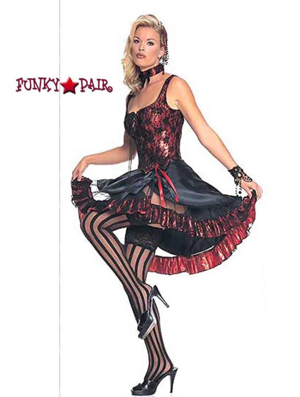 3PC. Can-can girl costume, includes bustier, skirt, and choker.