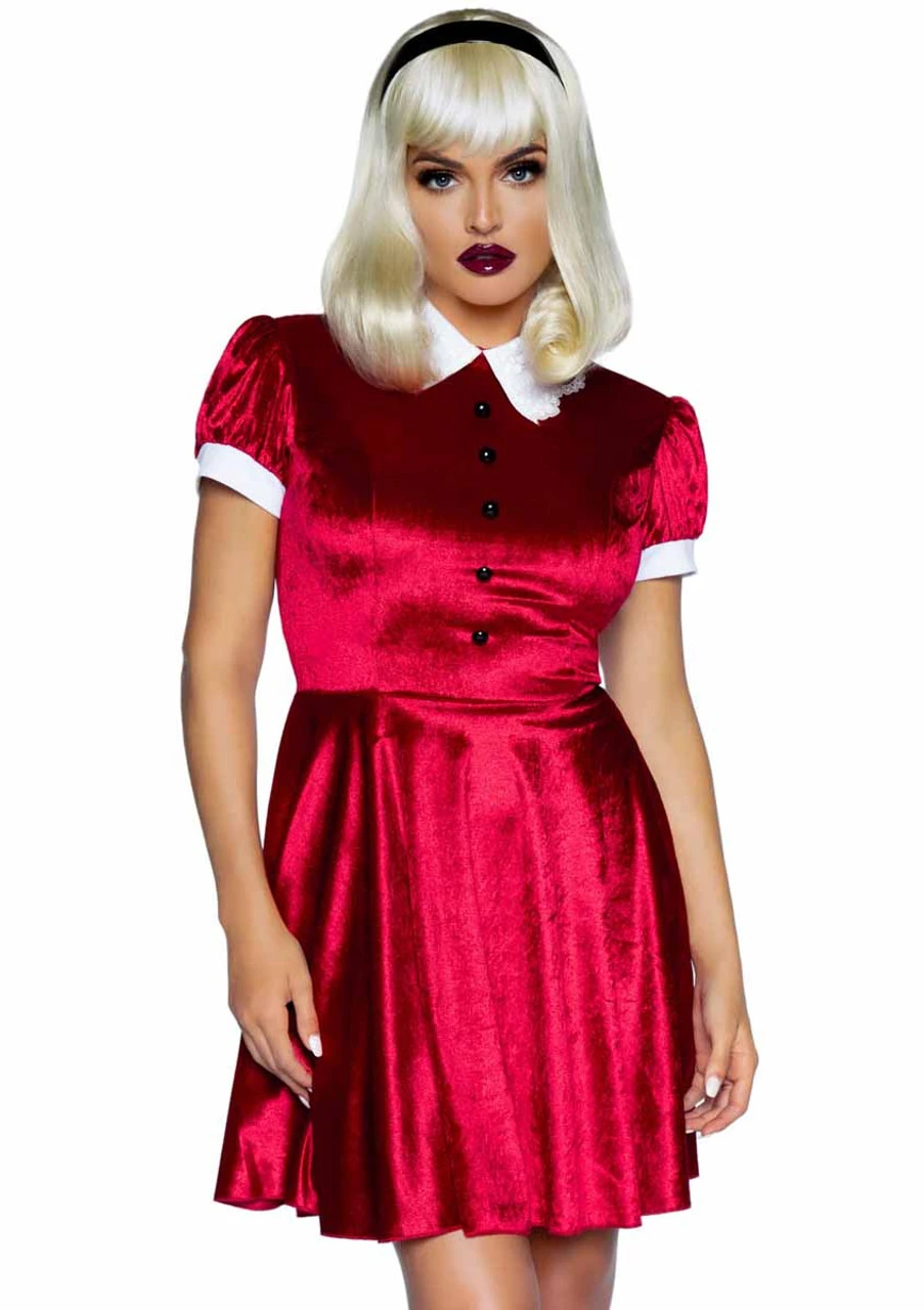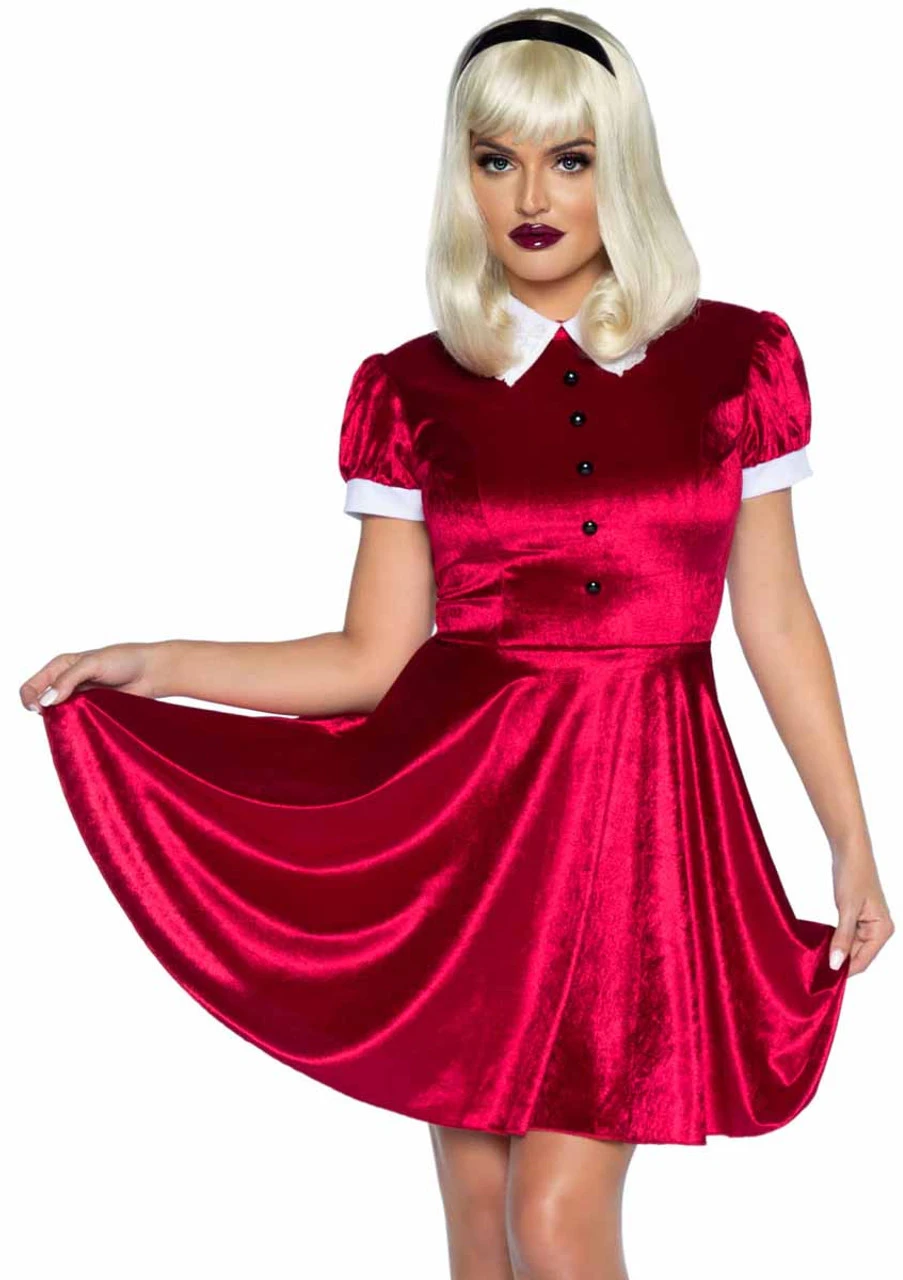 2 PC Spellbinding Witch, features velvet dress with button accents and headband.