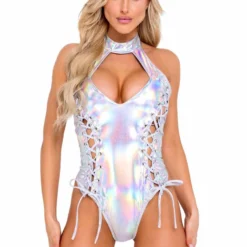 Roma R-6113 – Holographic Raver Lace-Up Romper