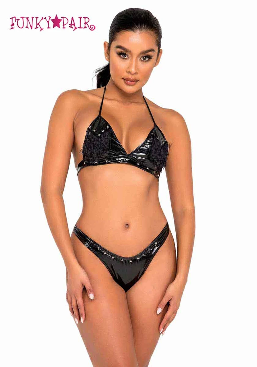 Roma R-6126 – Studded Vinyl Bikini Top With Fringe Detail
