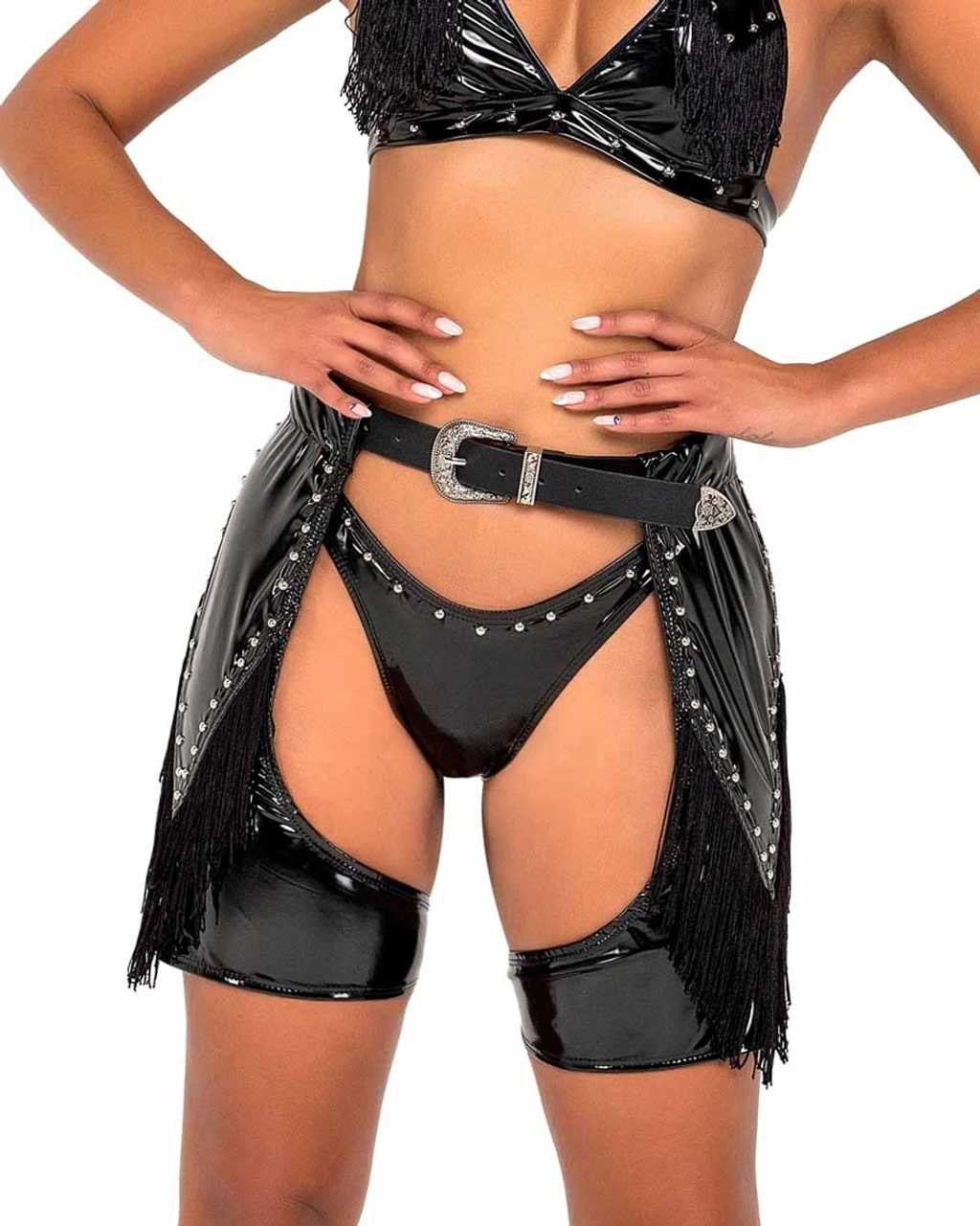 Roma R-6128 – Studded Vinyl Chaps With Fringe Detail